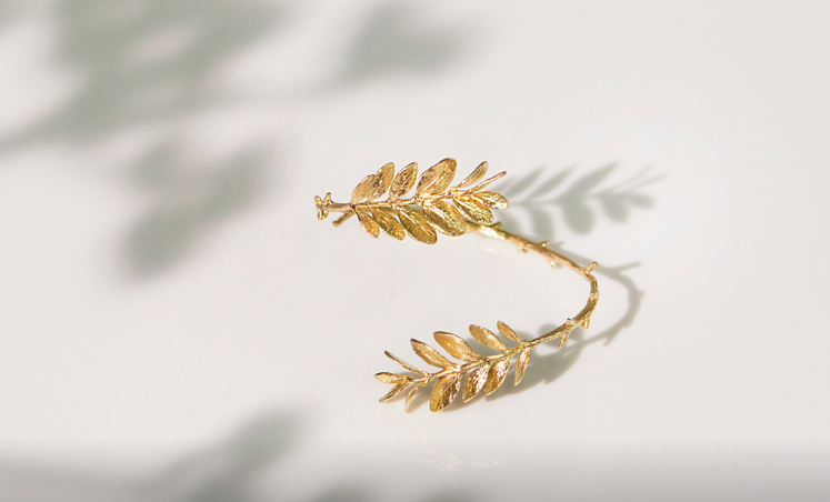 日復一日我們經歷著生命的高低起伏、季節更迭,新生與凋零總在霎那間,隨著時光的荏苒,那最初的感動很容易被沖淡被遺忘。設計師使用新生命的意象,成全想好好保護、收藏這份真情的心意,讓嫩芽般充滿希望與活力的精神,可以投射在每個戴上它的人心中。