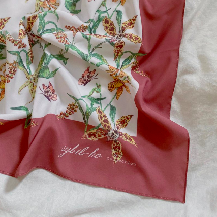 pattern中繪製了橘黃色蘭花群與飛舞的蝴蝶,結合秋冬感的煙燻色系外框,搭配淺色深色衣著,都有不一樣的和諧感。
