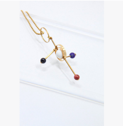 本系列以「分子式」的結構造型為靈感,講述人與人之間微妙的關係變化,既可永恆維繫也可能如電光火石般稍縱即逝,將無形的情感變化以品牌擅長的礦石與黃銅金屬表現,設計出充滿神秘與未來感的首飾配件。