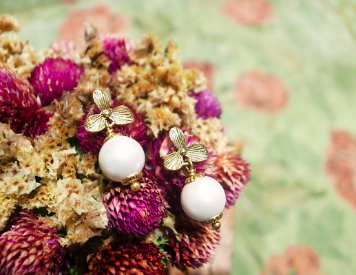 『尺寸』 女人花花朵 寬 1 公分, 花朵 + (白)姆貝珠 長 2.6 公分