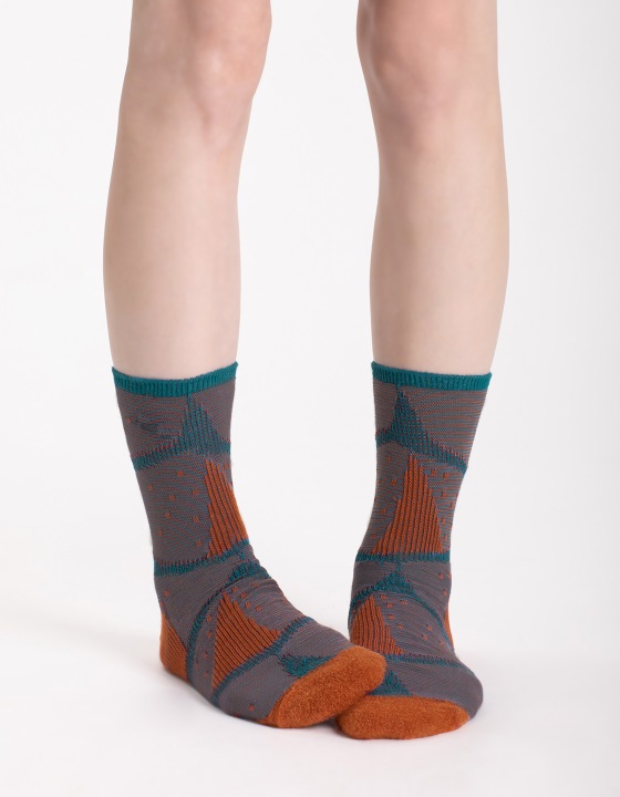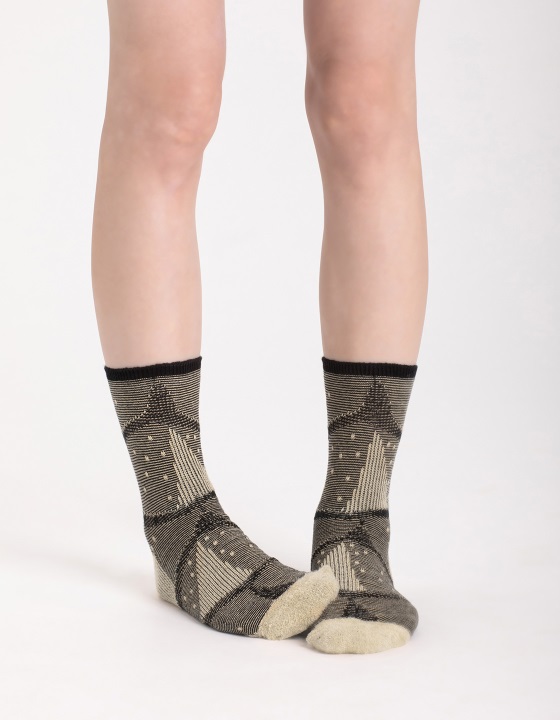 「心臟的重量3/4襪」正在秤重往其中一側傾斜的天平,時重時輕去裁定一生的時間。使用特殊線材羽毛紗,表現輕盈,和心臟的溫度。
